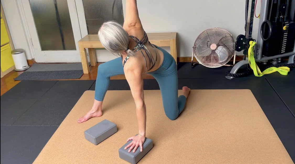The focus is on diaphragmatic breathing and building core stability while improving overall mobility.